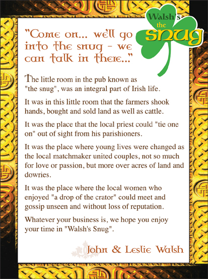 Copyright 2017 © Walsh's The Snug. All rights reserved.